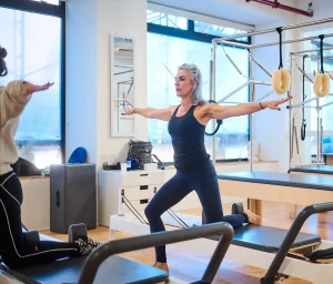 Hier können Beginner die Grundlagen des Reformer Trainings kennenlernen, dabei kommen vor allem klassische Übungen zum Einsatz, um die Muskulatur zu stärken sowie Balance und Flexibilität zu erhöhen